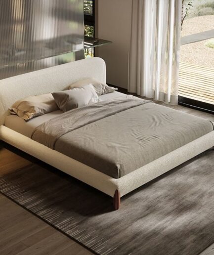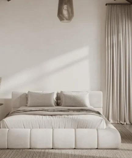 Modern White Boucle Platform Bed | Luxurious Bedroom Decore