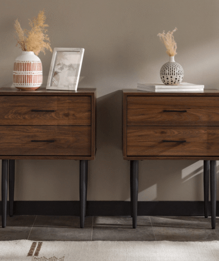 Mid-Century Solid Wood 2-Drawer Nightstand