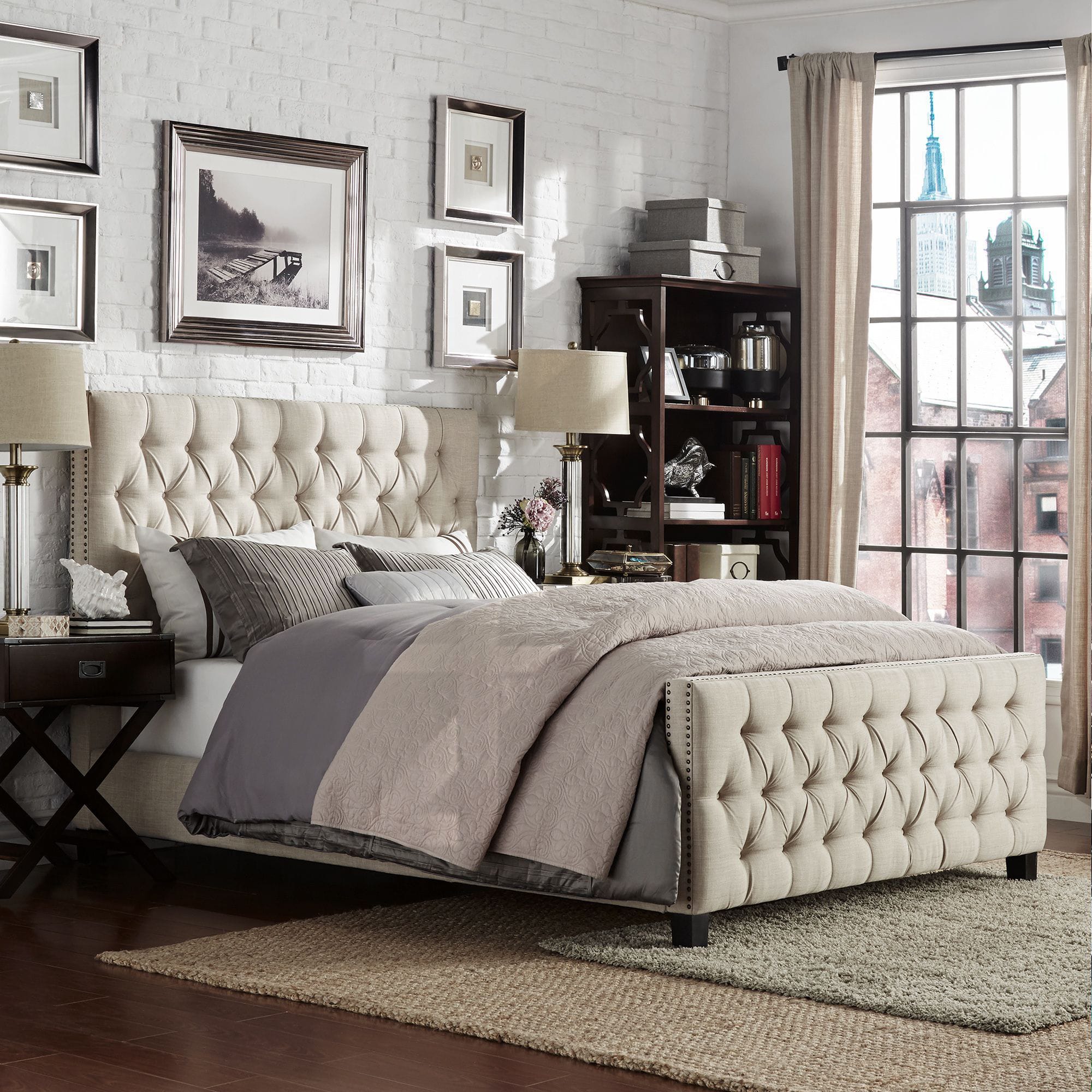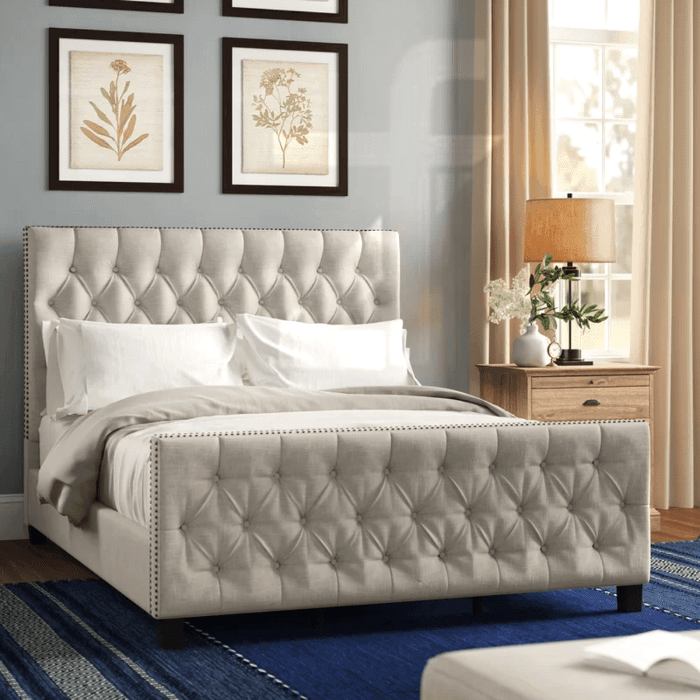 - Button-Tufted Headboard & Footboard: Classic diamond-pattern tufting creates stunning visual depth