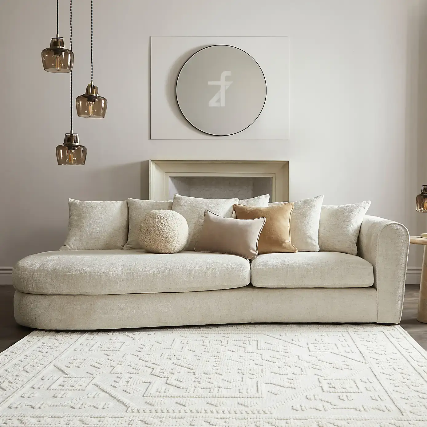 While exact dimensions should be confirmed with Zohaib Furniture representatives, the Blake Curved Arm Scatter Back Soft Sofa with chaise typically features substantial proportions designed for true lounging comfort. Chaise sofas generally measure approximately 230-280cm in total length (combining the main seating section and extended chaise), with depth ranging from 100-120cm at the chaise section and 85-95cm at the standard seating areas.​