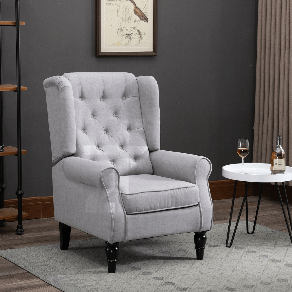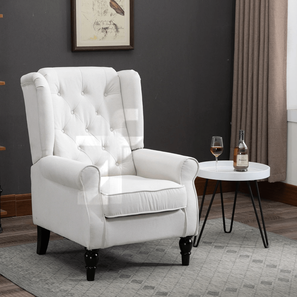 Complete your sophisticated spaces with complementary pieces from Zohaib Furniture’s collection. Side tables with wood elements echo the chair’s legs while providing functional surfaces. Floor lamps with traditional silhouettes create cohesive classic appeal. Ottomans in coordinating fabrics offer optional foot elevation. Area rugs in complementary tones ground seating arrangements. For living rooms, pair with matching accent chairs or contrast with different tufted styles creating layered sophistication.