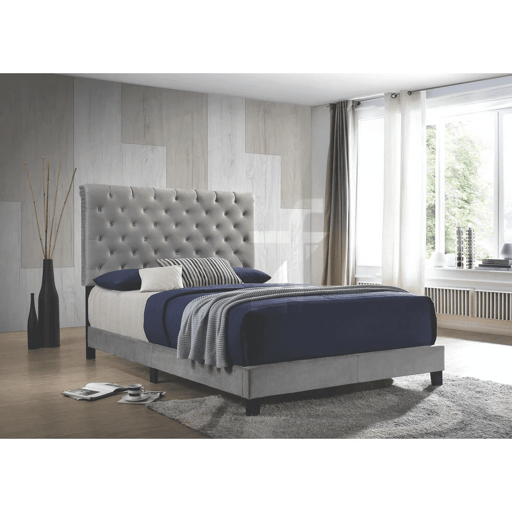 The crystal button tufting with hand applied nail heads creates spectacular visual drama through the combination of two traditional luxury techniques elevated with sparkling accents. Crystal button tufting uses buttons adorned with crystal or high-quality faceted acrylic rather than standard fabric-covered buttons—these crystal elements catch and reflect light, creating shimmer and sparkle that adds Hollywood glamour and red-carpet sophistication. The “hand applied” designation for nail heads indicates skilled craftsmen individually position each decorative metal stud rather than using automated processes—this traditional technique ensures precise placement and professional finish. Together, these details create headboard that sparkles like jewelry while maintaining sophisticated elegance.
