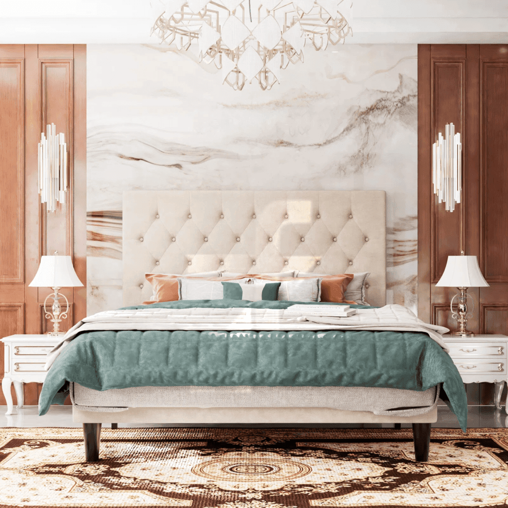 Headboard Height: Increase the height for a more dramatic, high-ceiling villa look, or lower it for a cozy attic apartment.