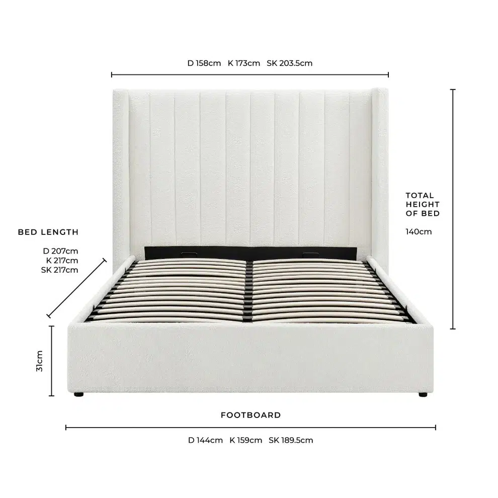 Transform your bedroom into a clutter-free sanctuary. Contact Zohaib Furniture today to discuss customization options and bring the Madison Bouclé Ottoman Storage Bed home.