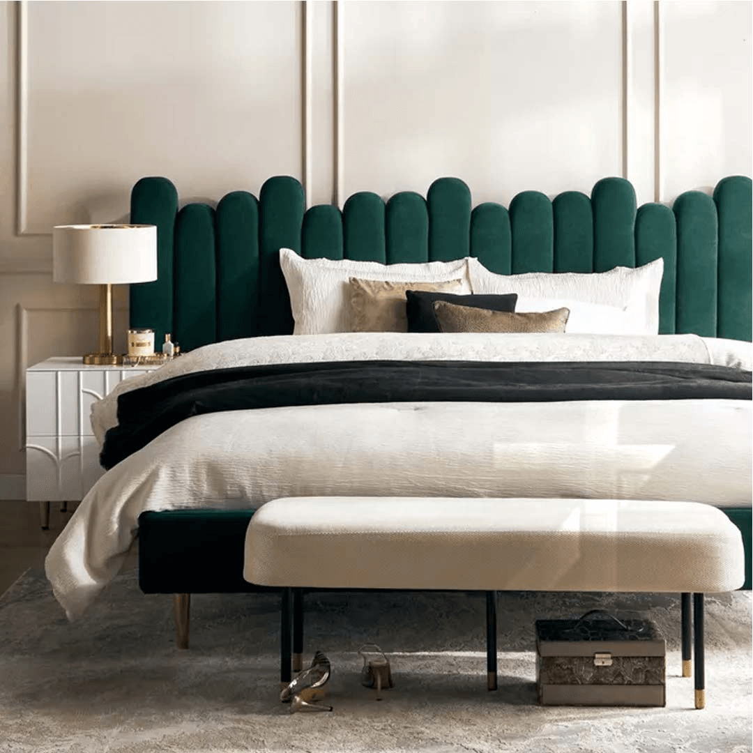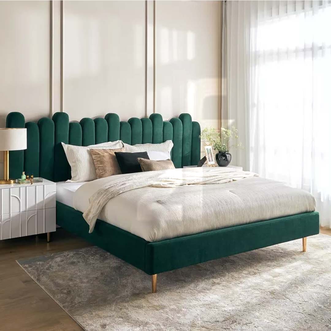 For a focal point of your bedroom, look no further than this upholstered mid-century bed that commands attention while maintaining the relaxed, accessible spirit characteristic of midcentury modern design. If you want to create a dreamy land vibe in your bedroom decor, look no further than Metteo the majestic, a bed frame that transforms ordinary sleeping quarters into extraordinary sanctuary worthy of your best rest. Featuring modern & contemporary style that speaks to current design sensibilities, the Metteo combines velvet soft fabric with solid wood base construction for both beauty and durability. The plywood and MDF frame demonstrates quality multi-material engineering that balances different material properties to create optimally performing furniture. With headboard height 130cm (approximately 51 inches), this bed establishes commanding presence without overwhelming the space the height provides substantial visual impact while remaining proportionate to standard bedroom ceiling heights. The lightweight, durable wood frame offers surprising ease of handling during assembly and rearrangement despite robust construction that ensures longevity. The foam padded headboard provides genuine comfort for sitting activities reading, watching television, working on laptop, or simply relaxing against supportive cushioned surface. Can be customized in any size to accommodate your specific requirements, whether you need unusual dimensions for unique room configuration or simply prefer particular proportions. At Zohaib Furniture, we’ve designed the New Metteo Bed to deliver majestic beauty through refined minimalist design, quality materials, and versatile contemporary styling that creates bedrooms worthy of being called your personal dreamy land.