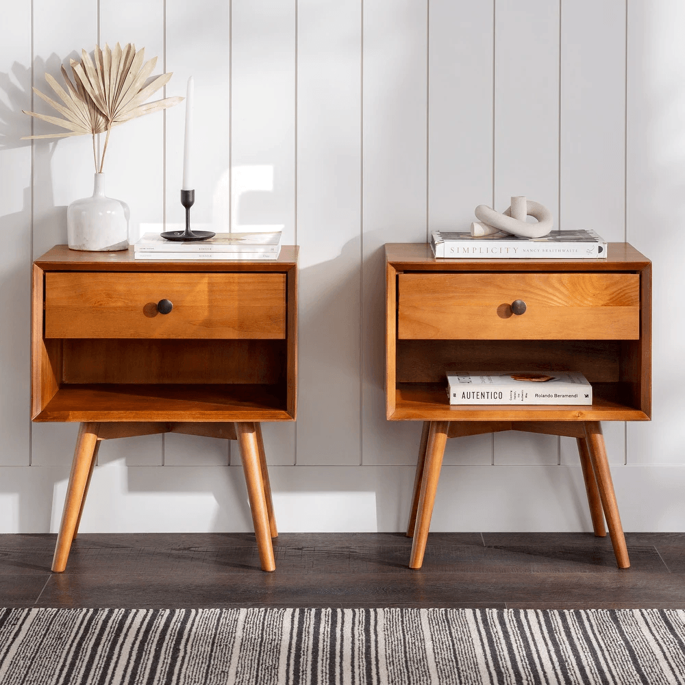 Iconic Mid-Century Solid Wood 1 Drawer Nightstand Design Meets Modern Living