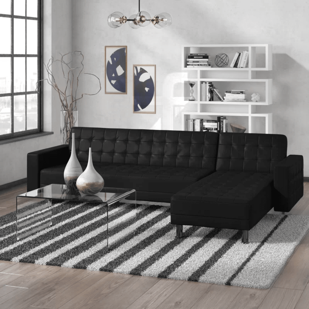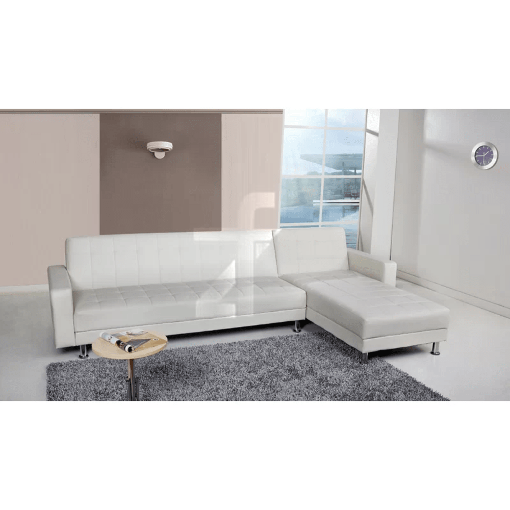 Unleash versatile luxury in your living space with the Vegan Leather Sofa, where innovative modular design meets contemporary elegance and multifunctional brilliance. This exceptional sofa and chaise sectional features a revolutionary transformable design that effortlessly converts from stylish seating into a queen sized sleeper sofa, making it the perfect solution for Dubai homes where adaptability and sophistication must coexist.
