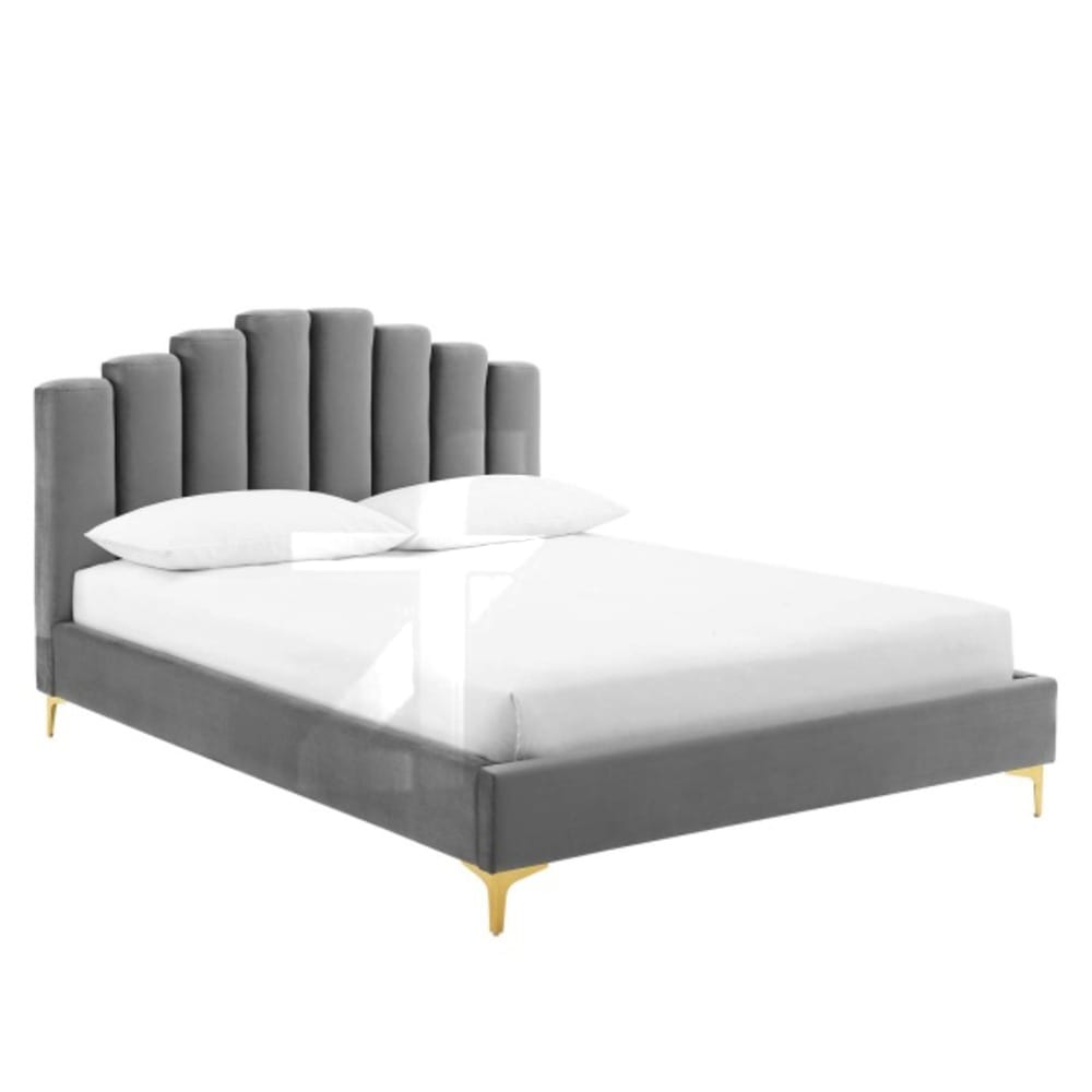 Priced at AED 1,300 (regular price AED 1,500), the Velvet Upholstered Bed delivers extraordinary value for platform bed with distinctive arching channel tufting, performance velvet upholstery, wood slat system with center beam, gold metal legs, and solid wood construction. Comparable beds with these features in Dubai showrooms typically retail for AED 3,500-6,000.